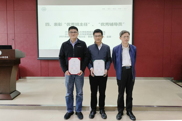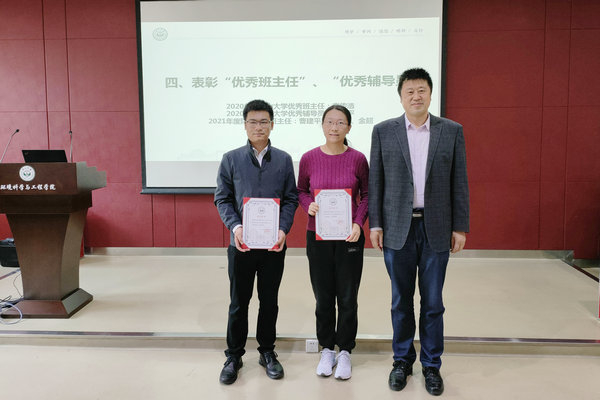 期间,举行了“优秀班主任”、“优秀辅导员”颁奖仪式。甘远璠书记为2021年度“91传媒 优秀班主任”获得者李传浩教授、2021年度“91传媒 优秀辅导员”获得者曹建平副教授颁发荣誉证书。曹建平副教授、赵姗姗副教授、金超副教授获评2021年“91传媒 优秀班主任”,孙连鹏院长为获得者颁发荣誉证书。