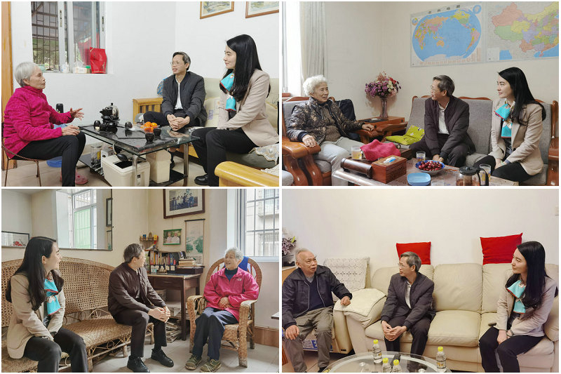 甘远璠书记、彭灵灵副书记依次看望慰问吕越娜(左上图)、罗毓珍(右上图)、钟远清(左下图)、谢镜明(右下图)