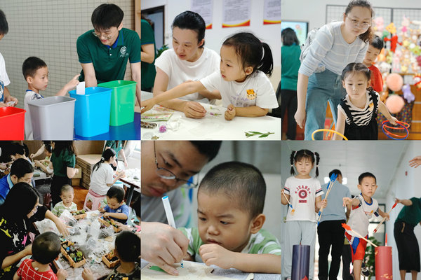 接着,大家便迫不及待地投入到游园游戏中。学院分工会精心策划了一系列富有趣味性和益智性的游戏项目,包括魔力套圈圈、垃圾分类游戏、干花书签制作、国风传统乐器涂色、多肉植物微景观DIY、投壶游戏等多个游戏,大家积极参与其中,相互合作,快乐游戏,在每个孩子和家长心中留下一份喜悦、一份美好的记忆。活动现场洋溢着阵阵欢声笑语,充分展现了教职工亲子大家庭的和谐和活力。