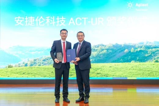 安捷伦副总裁兼大中华区业务总经理杨挺(右)为王鹏教授(左)颁发安捷伦ACT-UR证书