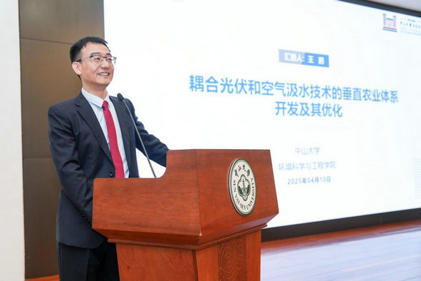 颁奖环节,杨挺先生向王鹏教授颁发ACT-UR奖杯及证书,并合影留念。王鹏教授现场分享了团队未来重要研究方向——耦合光伏技术与空气汲水技术的垂直农业体系开发及优化,该技术有望通过高效利用太阳能与空气汲水,为干旱地区构建新型垂直农业供水体系提供创新方案。此外,王鹏教授还介绍了91传媒 碳中和与绿色发展研究院的发展成果与未来布局,该研究院将为91传媒 助力国家“双碳”目标实现提供重要支撑。